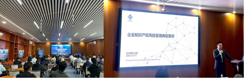 在松山湖园区知识产权保护态势分析环节,深入浅出地讲解了知识产权保护的重要性以及侵权行为的严重后果,从知名商标被恶意抢注到核心技术被侵权盗用,统筹梳理了区域企业在专利布局、侵权风险防控中的共性问题。在企业实务分享环节,广东省华中粤创知识产权运营管理有限公司总经理文言结合其丰富的实战经验,深入剖析了当前高端装备制造、新能源、新材料等战略性新兴产业领域知识产权风险管理案例。他从专利预警分析、侵权风险评估到纠纷应对策略,系统阐述了企业如何将知识产权管理从“被动防御”转向“主动规划”,为参会企业提供了知识产权保护经验。
