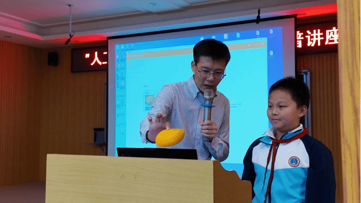 2025年12月3日,一场充满未来感的人工智能主题活动走进了东莞市桥头镇第四小学。此次活动由东莞市科学技术协会指导,东莞市东莞理工科技创新研究院主办,东莞科学馆、东莞市桥头镇第四小学承办。活动邀请了来自东莞理工学院计算机科学与技术学院的胡天明教授与魏小锐老师为全校师生带来一堂“科技与想象力交汇”的特别课程。活动现场气氛热烈,同学们对人工智能展现出浓厚兴趣,校园中弥漫着探索与好奇的火花。
