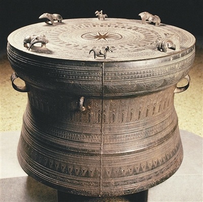铜鼓曾广泛流传于壮、瑶、苗、彝、侗、水、布依、黎、佤等民族,是祭祀、庆典活动中的重要乐器,类型多样,形制、纹饰等方面多有相似或共通之处,反映了中国历史上各民族间的交往交流和文化上的互通互鉴。